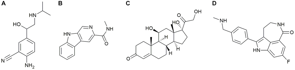 The CMap method was used to select the top 4 active compounds with the largest negative correlation absolute values, including cimaterol, Rucaparib, FG-7142, and Hydrocortisone (Figure 10A–10D), as shown in Appendix 2. These four active compounds could be therapeutic targets of PND.