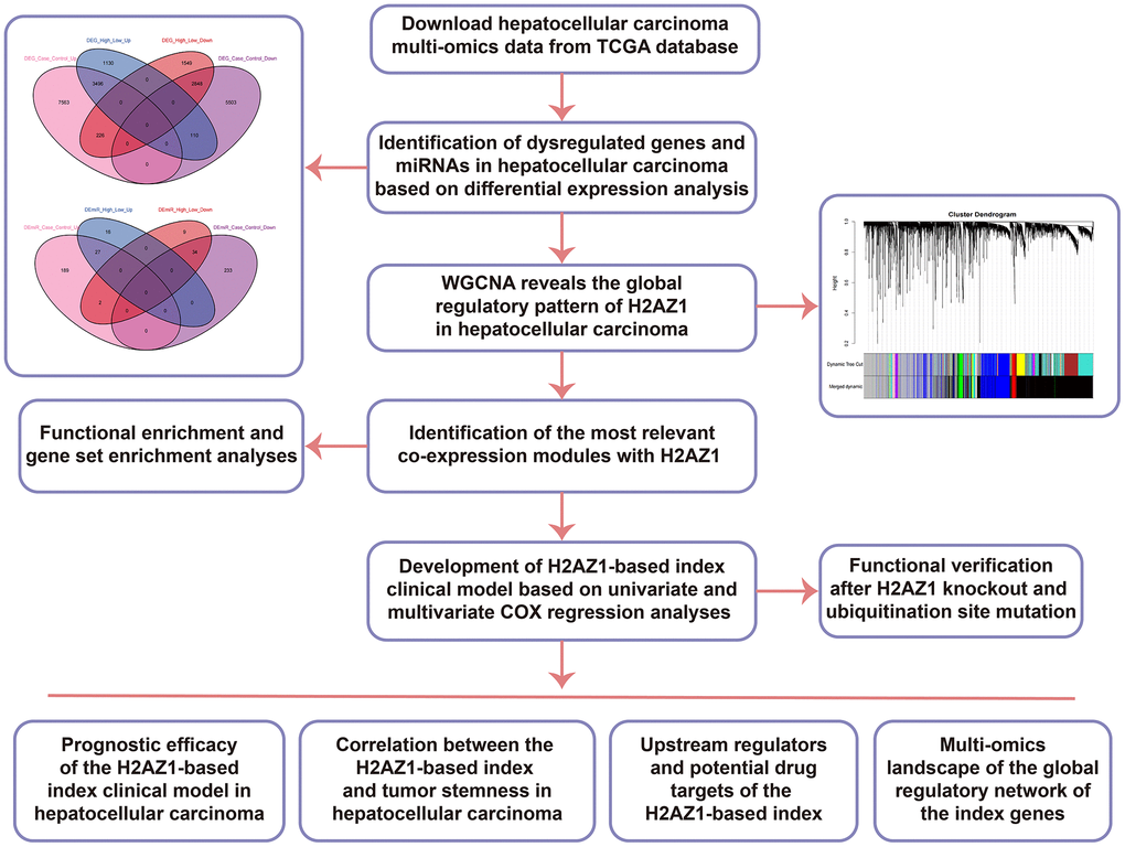 PHC: Primary liver cancer; HCC: Hepatocellular carcinoma; RFA: Radiofrequency ablation; TACE: Transcatheter arterial chemoembolization; H2AZ1: H2A family member Z; WGCNA: Weighted gene co-expression network analysis; DEGs: Differentially expressed genes; Treg: Regulatory T cells; DUB: Deubiquitinating enzymes; GEO: Gene Expression Omnibus; GO: Gene Ontology; KEGG: Kyoto Encyclopedia of Genes and Genomes; MSigDB: Molecular Signature Database; GSEA: Gene Set Enrichment Analysis; ssGSEA: Gene set enrichment analysis; RBPs: RNA binding proteins; TFs: Transcription factors; SNP: Single nucleotide polymorphism; SD: Standard deviation.