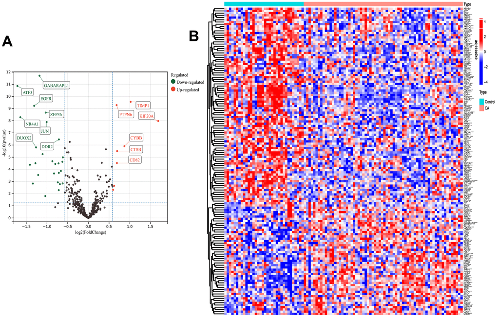 In this study, differentially expressed genes (DEGs) between samples from patients with OA and healthy controls were identified using gene expression and microarray experiments. Identification of the DEGs and immunophenotyped ferritin-related molecules should help us acquire more in-depth knowledge about the molecular mechanisms of OA.