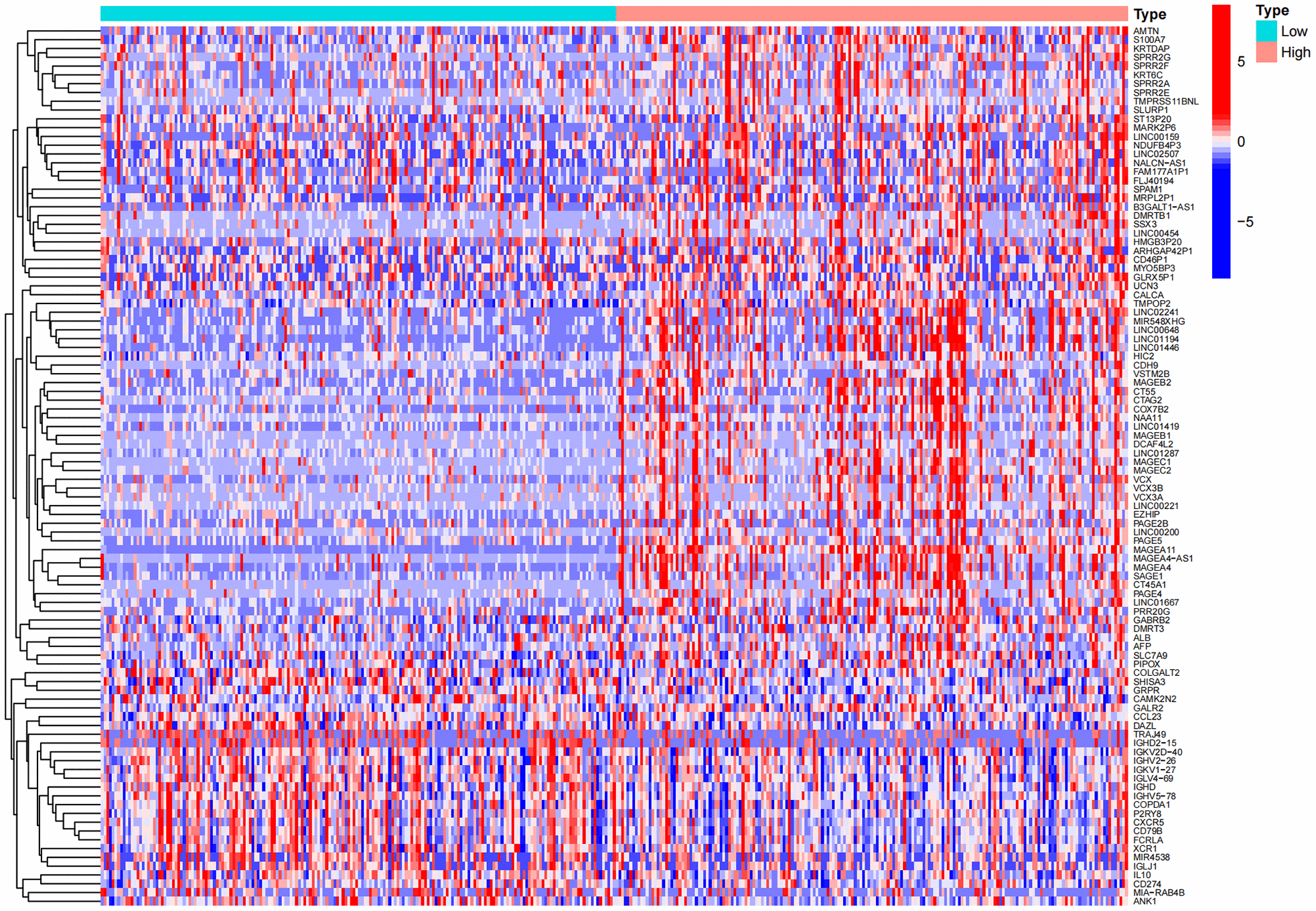 Heat map of differential genes in the high and low expression groups of MAGE-A11.