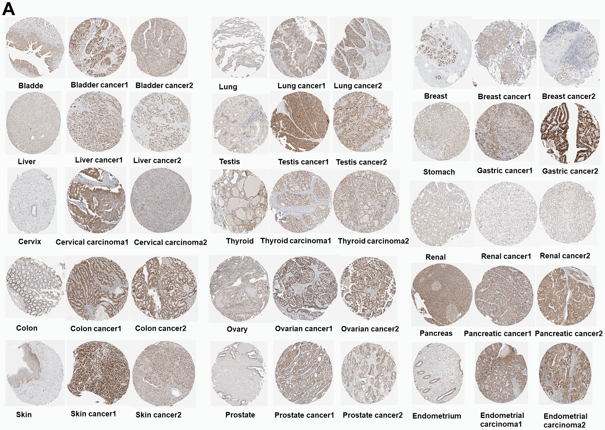 Figure 2. (A) Immunohistochemical images of the normal (left) and tumor (right) group with PUS7 protein expression.