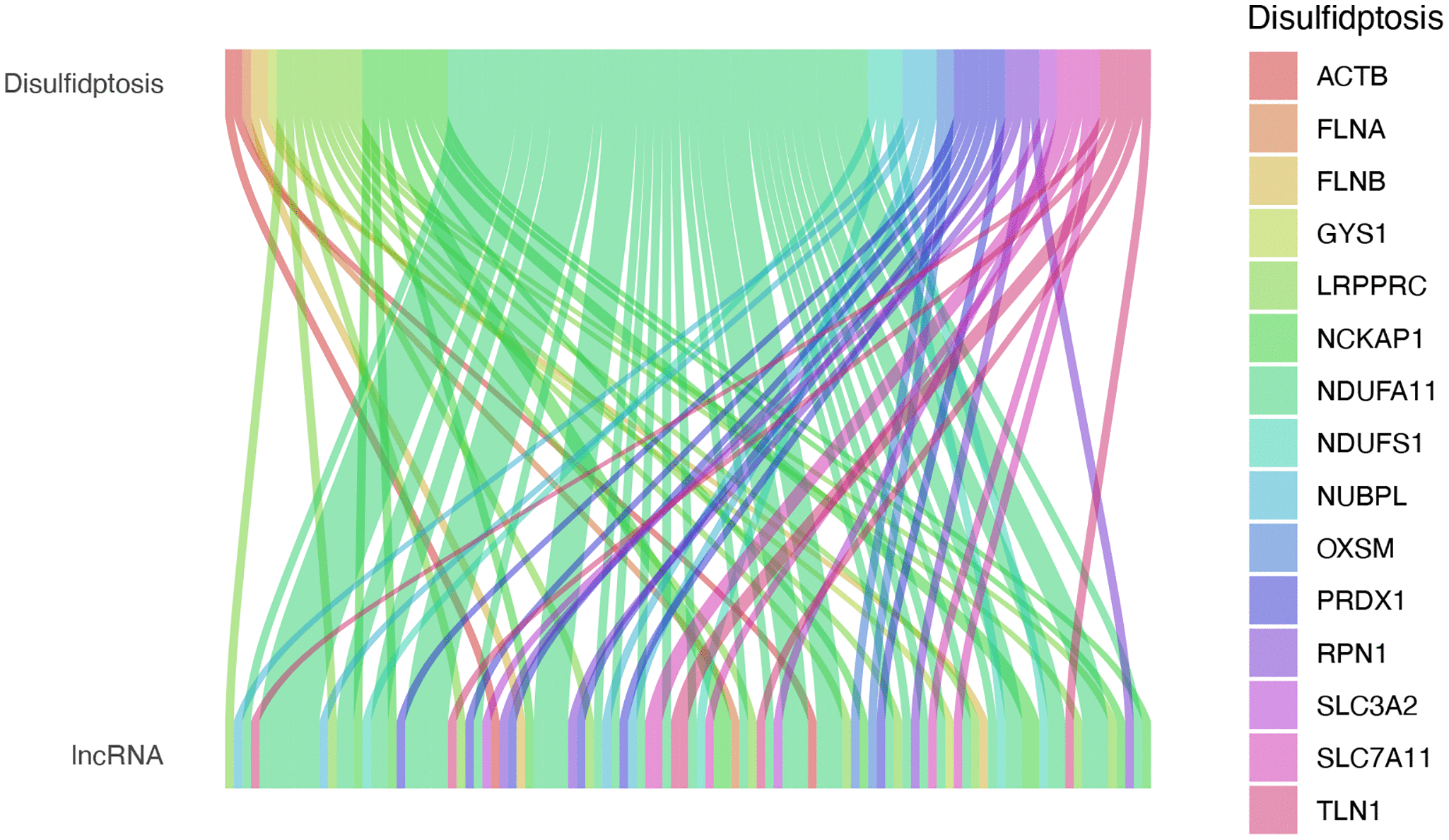 Figure 2. Expression of DRG-lncRNAs in LUAD. DRG-lncRNAs, disulfidptosis-related long non-coding RNAs. Abbreviation: LUAD; lung adenocarcinoma.